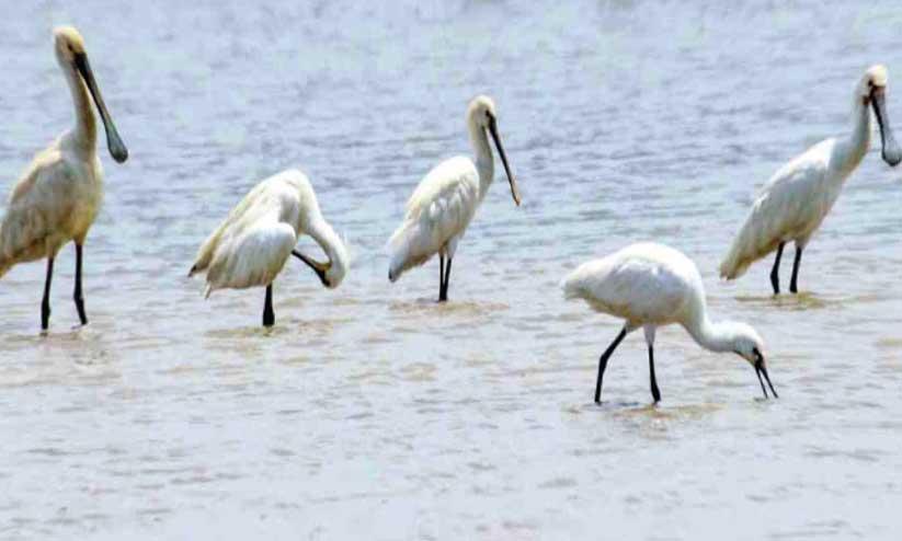 എനാമാക്കൽ കോൾ പാടത്ത് വിരുന്നെത്തിയ സ്പൂൺ ബിൽ കൊക്കുകൾ