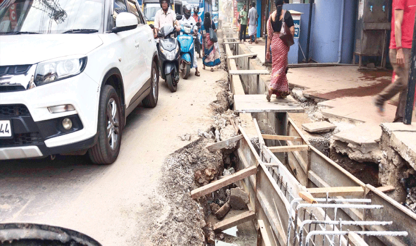 text_fieldsസ്കൂട്ടർ അപകടത്തിൽപെട്ട പാവറട്ടി സെന്ററിലെ ഓട നിർമാണ സ്ഥലം