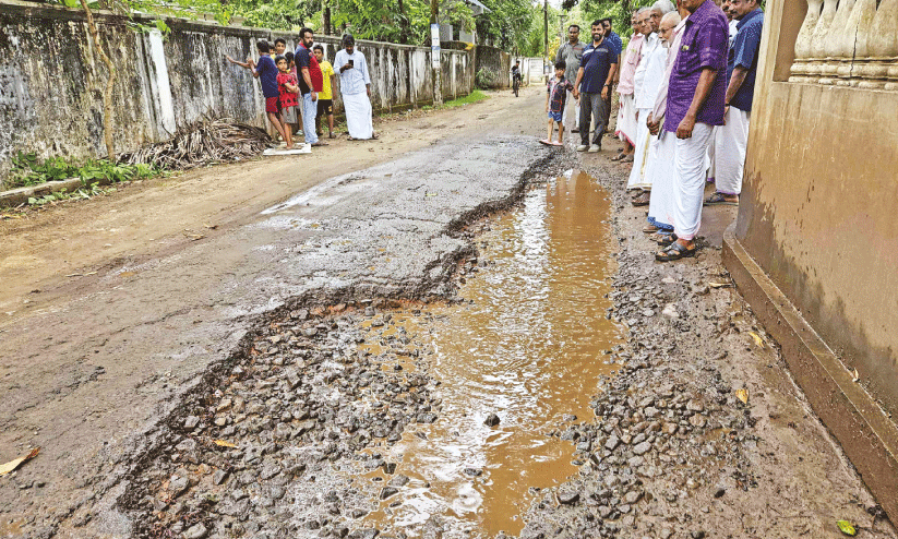 text_fieldsനെടുമ്പറമ്പിന് സമീപം തകർന്ന വി.പി നായർ റോഡ്
