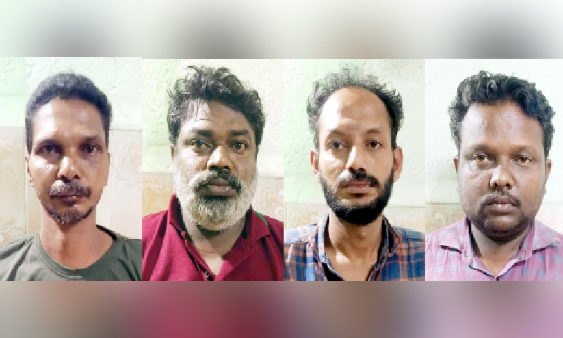 ഇരിങ്ങാലക്കുട മണക്കലശ്ശേരി ആളൂർ വീട്ടിൽ ഹരിരത്തൻ (37), ചിയ്യാരം വടൂക്കര പുതുശ്ശേരി തെക്കലത്തിൽ വീട്ടിൽ മുഹമ്മദ് (44), നെടുപുഴ കണിമംഗലം കോട്ടമ്പുള്ളി വീട്ടിൽ കെ.എസ്. ശ്രീനി (34), ഇരിങ്ങാലക്കുട കാട്ടൂർ പള്ളിയിൽ വീട്ടിൽ ലിനേഷ് (40) എന്നിവരെയാണ് ടൗൺ ഈസ്റ്റ് പൊലീസ് അറസ്റ്റുചെയ്തത്.