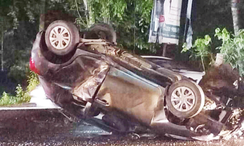 നിയന്ത്രണംവിട്ട കാർ ഡിവൈഡറിലിടിച്ച് മറിഞ്ഞു