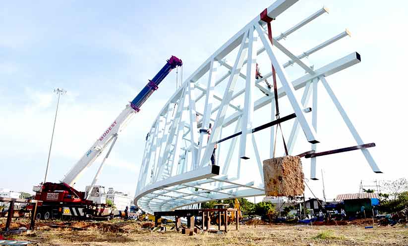 text_fieldsതൃശൂർ ശക്തൻ നഗറിൽ സ്ഥാപിക്കാനായി ആകാശപ്പാത ഉയർത്തുന്നു