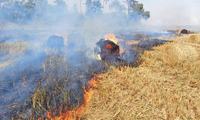കൊയ്യാതെ ഉപേക്ഷിച്ച നെൽപ്പാടത്തിന് തീയിട്ടു; 150ഓളം വൈക്കോൽക്കെട്ട് കത്തിനശിച്ചു