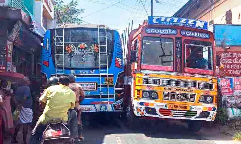 text_fieldsതൃശൂർ -വാടാനപ്പള്ളി സംസ്ഥാന പാതയിൽ കണ്ടശ്ശാംകടവിൽ റോഡിന്റെ വീതി കുറവ് കാരണം കടന്നുപോകാൻ പ്രയാസപ്പെടുന്ന വലിയ വാഹനങ്ങള്
