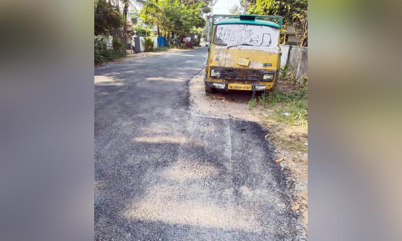 കഴിഞ്ഞദിവസം റോഡ് ടാർ ചെയ്തെങ്കിലും വാഹനങ്ങൾ കിടക്കുന്നിടത്ത് ടാർ ചെയ്യാൻ കഴിഞ്ഞില്ല. വീതി കുറഞ്ഞ റോഡിൽ വാഹനങ്ങളുടെ കിടപ്പ് കാരണം രണ്ട് വാഹനങ്ങൾക്ക് കടന്നുപോകാൻ പ്രയാസമാണ്. കാൽനടക്കാർക്കും ഇത് തടസ്സമാണ്. ഹൈവേയിൽ ഗതാഗതം തടസ്സപ്പെടുമ്പോൾ വാഹനങ്ങൾ തിരിച്ചുവിടുന്ന റോഡാണിത്. അപ്പോൾ കുരുക്ക് രൂക്ഷമാകും.