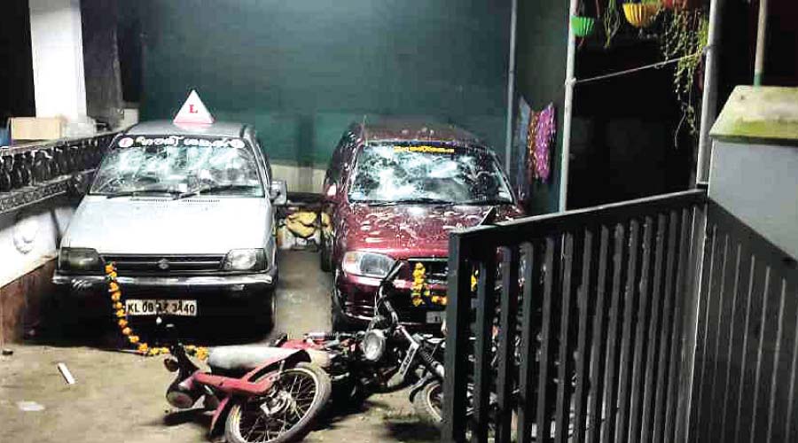 പൂജക്ക് വെച്ചിരുന്ന ഡ്രൈവിങ് സ്കൂൾ വാഹനങ്ങൾ തല്ലിത്തകർത്തു