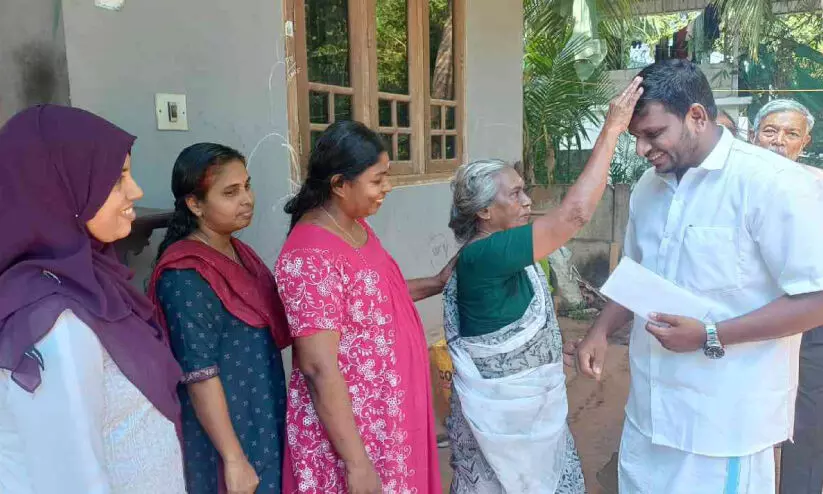 കടവല്ലൂർ പഞ്ചായത്ത് 14ാം വാർഡ് ജനകീയ സ്വതന്ത്ര സ്ഥാനാർഥിയായി മത്സരിക്കുന്ന സലാഹുദ്ദീനെ അബേദ്കർ നഗർ നിവാസികൾ ആശിർവദിക്കുന്നു