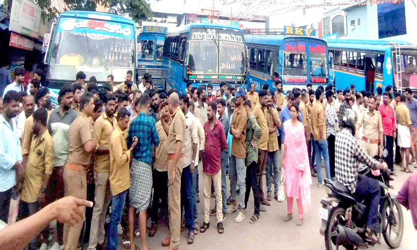 ആറ്റിങ്ങലിനെ സ്തംഭിപ്പിച്ച് സ്വകാര്യ ബസുകാരുടെ മിന്നൽ പണിമുടക്കും സംഘർഷവും