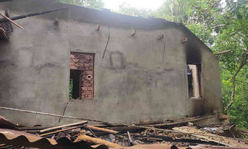 രണ്ടു മുറിയും ഹാളും അടുക്കളയുമുള്ള ഓടുമേഞ്ഞ വൈദ്യുതിബന്ധം താൽക്കാലികമായി വിച്ഛേദിച്ചിരുന്ന വീടാണ് നശിച്ചത്. ഓമനയുടെ പിതാവ് മുകുന്ദൻ മരിച്ചതിനെ തുടർന്ന് രണ്ടു വർഷത്തോളമായി ആൾ താമസമില്ലാതെ അടച്ചിട്ടിരുന്ന വീട്ടിനുള്ളിൽ സൂക്ഷിച്ചിരുന്ന അലമാര, കട്ടിൽ, മേശ ഉൾപ്പെടെയുള്ള വീട്ടു സാധനങ്ങൾ വീട്ടിൽ നിന്ന് കവർന്നതിനുശേഷമാണ് വീടിന് തീയിട്ടതെന്ന് പരാതിയിൽ പറയുന്നു.