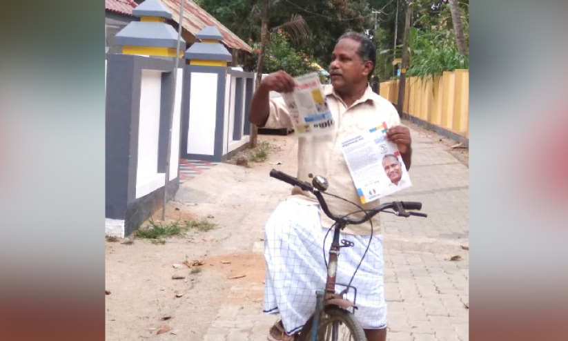 പത്രവിതരണത്തിനൊപ്പം വോട്ടും തേടി...