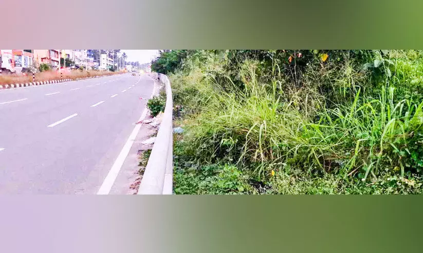 ദേശീയപാതയോരത്തെ നടപ്പാത കാടുകയറി