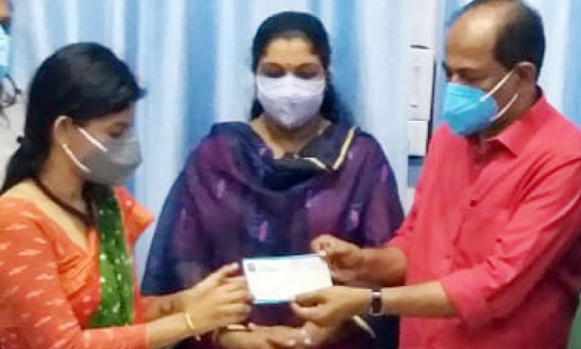 text_fieldsനെടുമങ്ങാട് ജില്ലാ ആശുപത്രിലെ ആരോഗ്യപ്രവർത്തകർക്ക് പി.പി.ഇ കിറ്റും മാസ്കും വാങ്ങുന്നതിന് ഒരു ലക്ഷം രൂപയുടെ ചെക്ക് നിയുക്ത എം.എൽ.എ ജി.ആർ. അനിൽ ആശുപത്രി സൂപ്രണ്ട് ശിൽപാ ബാബുതോമസിന് കൈമാറുന്നു