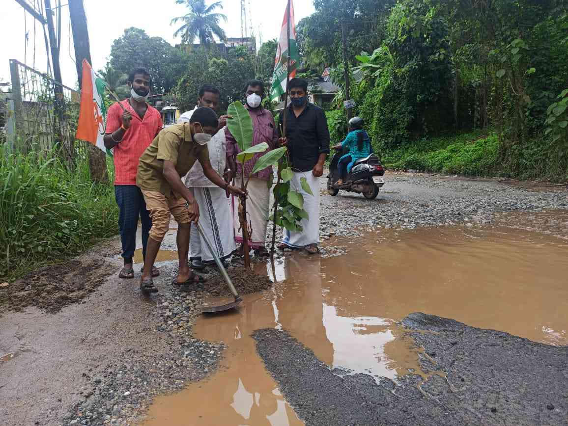 റോഡിൽ വാഴനട്ട് യൂത്ത് കോൺഗ്രസ് പ്രതിഷേധം