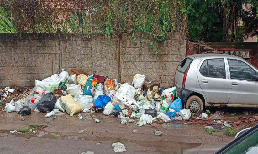 പാരീസ് റോഡിൽ മാലിന്യ നിക്ഷേപം: ദുർഗന്ധത്താൽ വലഞ്ഞ് കാൽനടക്കാർ