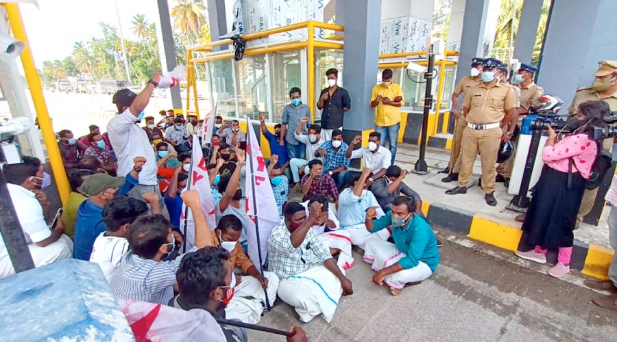 തിരുവല്ലം ടോൾ പ്ലാസയിൽ നടന്ന പ്രതിഷേധം
