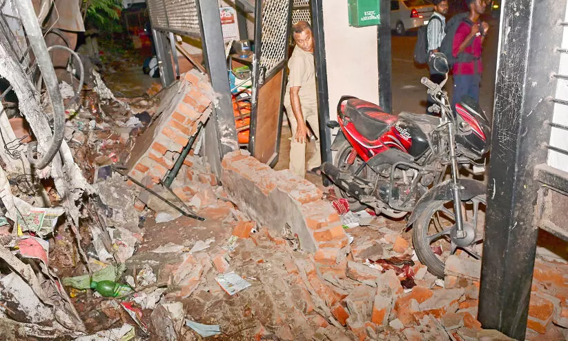 വെള്ളിയാഴ്ച വൈകീട്ട് 5.10 ഓടെയാണ് ആർ.എം.എസിന് സമീപത്തെ കെ.എസ്.ആർ.ടി.സി ബസ് സ്റ്റാൻഡിലെ സ്റ്റേഷൻ മാസ്റ്ററുടെ മുറിയിലേക്കും ബസ് കാത്തിരിപ്പ് കേന്ദ്രത്തിലേക്കും മതിൽ ഇടിഞ്ഞ് വീണത്.