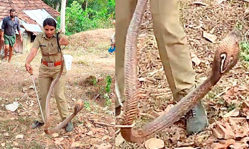 റാപ്പിഡ് െറസ്പോൺസ് ടീം ബീറ്റ് ഫോറസ്റ്റ് ഓഫിസർ രോഷ്നി ജി.എസ് കഴിഞ്ഞദിവസം മുണ്ടേല ഭാഗത്ത് വീട്ടുവളപ്പിൽ കണ്ട മൂർഖൻ പാമ്പിനെ പിടികൂടുന്നു