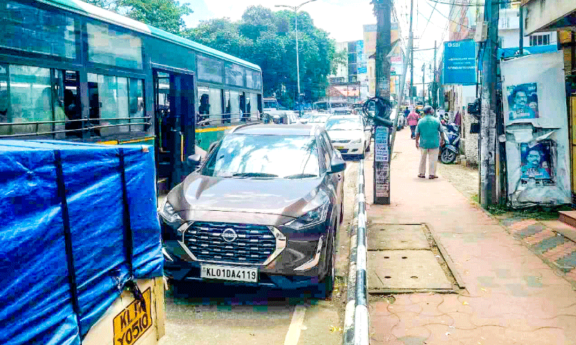 അനധികൃത വാഹനപാര്ക്കിങ്; വീര്പ്പുമുട്ടി ആയുര്വേദ കോളജ് ജങ്ഷന്