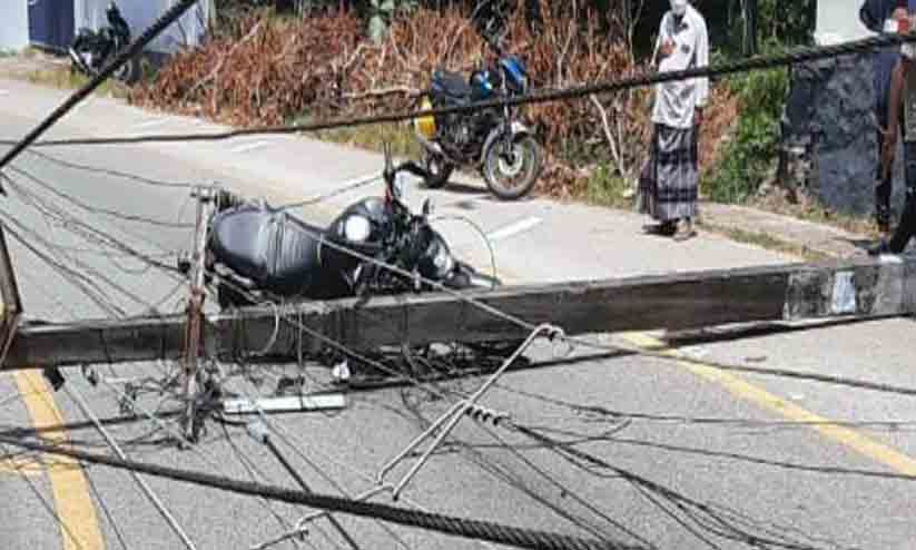 ബൈക്കിന് മുകളിൽ വൈദ്യുതി പോസ്റ്റ് വീണു; യാത്രികൻ രക്ഷപ്പെട്ടത് തലനാരിഴക്ക്