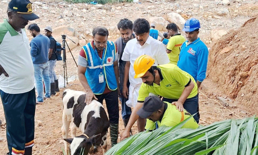 മുണ്ടക്കൈ: പുഞ്ചിരിമട്ടം വനറാണി എസ്റ്റേറ്റിലേക്കുള്ള പാലവും റോഡും ഉരുൾപൊട്ടലിൽ ഒലിച്ചുപോയതിനെ തുടർന്ന് ഒറ്റപ്പെട്ടു കിടക്കുന്ന വനറാണി ഡെയറി ഫാമിലെ 22ഓളം ഉരുക്കൾക്കുള്ള തീറ്റവസ്തുക്കൾ അഡ്വ ടി. സിദ്ദീഖ് എം.എൽ.എയുടെ നേതൃത്വത്തിൽ എത്തിച്ചു. ക്ഷീരവികസന വകുപ്പ് വയനാട് ജില്ലയുടെ ഇടപെടലിനെ തുടർന്ന് ലഭിച്ച 2690 കിലോ പച്ചപ്പുല്ല്, 500 കിലോ വൈക്കോൽ, 500 കിലോ സൈലേജ്, കേരള ഫീഡ്സ് നൽകിയ 10 ചാക്ക് കാലിത്തീറ്റ എന്നിവ വൈറ്റ് ഗാർഡ്, വിഖായ വളന്റിയർമാർ ഉൾപ്പെടെ 50ലധികം യുവാക്കളുടെ ശ്രമദാനമായാണ് ഡെയറി ഫാമിൽ എത്തിച്ചത്. ക്ഷീര വികസന വകുപ്പ് അസി. ഡയറക്ടർ പി.എച്ച്. സിനാജുദ്ദീൻ, മൃഗസംരക്ഷണ വകുപ്പിലെ അസി. വെറ്ററിനറി സർജൻ ഡോ. ശ്രീഷിത, ലൈവ് സ്റ്റോക്ക് ഇൻസ്പെക്ടർമാർ, ഡെയറി ഫാം ഇൻസ്പെക്ടർ ജിതിൻ തോമസ്, റിട്ട. ആർമി ഓഫിസർ വിജയൻ ചൂരൽമല, ചൂരൽമല ക്ഷീരസംഘം പ്രസിഡന്റ് കെ. രാജീവൻ, മൂപ്പൈനാട് സംഘം സെക്രട്ടറി പി.വി. ജോസ്, ക്ഷീരസംഘം ജീവനക്കാർ എന്നിവർ പങ്കെടുത്തു.