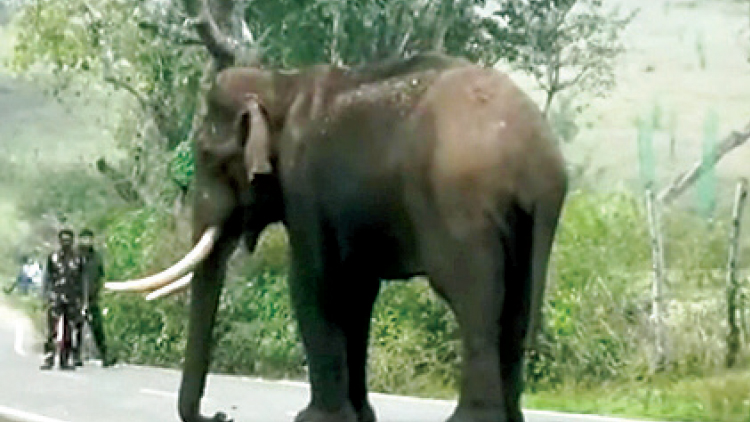 കാട്ടാന റോഡിൽ; മണിക്കൂറുകളോളം ഗതാഗതം തടസ്സപ്പെട്ടു