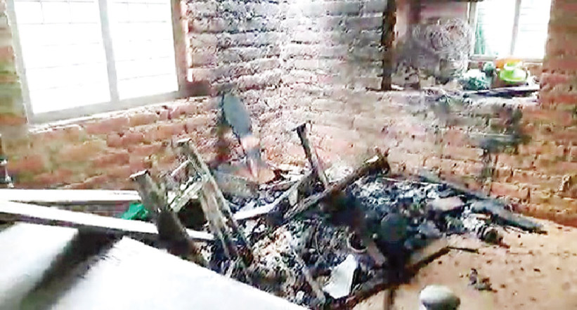 കതകു തകർത്ത് വീട്ടുപകരണങ്ങൾക്ക് തീയിട്ടു