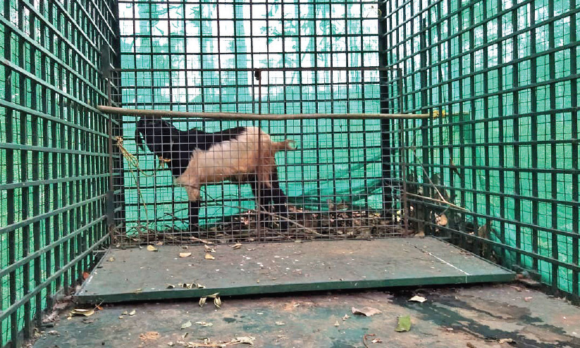 text_fieldsകടുവയെ പിടികൂടാൻ ഒരുക്കിയ കൂട്ടിൽ 15 ദിവസമായി ഇരയായി കിടക്കുന്ന ആട്