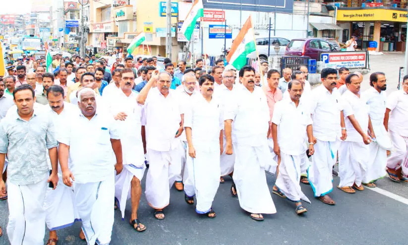 കോൺഗ്രസ് പ്രവർത്തകർ സുൽത്താൻ ബത്തേരി ടൗണിൽ നടത്തിയ പ്രതിഷേധ പ്രകടനം