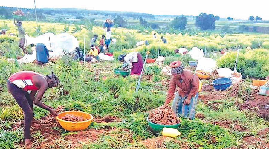 text_fieldsകര്ണാടകയിലെ തോട്ടത്തിലെ ഇഞ്ചി വിളവെടുപ്പ്