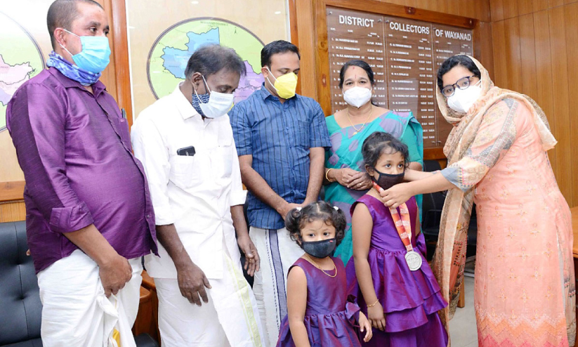 വികസനകാര്യ സ്ഥിരം സമിതി ചെയര്പേഴ്സൻ ഉഷ തമ്പി, രക്ഷിതാക്കളായ പുല്പള്ളി വേലിയമ്പം നടക്കുഴക്കല് വീട്ടില് സന്തോഷ് ജോസ്, ചിഞ്ചു സന്തോഷ് എന്നിവര് പങ്കെടുത്തു. പുല്പള്ളി സെൻറ് മേരീസ് ഇംഗ്ലീഷ് മീഡിയം സ്കൂളിലെ ഒന്നാം ക്ലാസ് വിദ്യാര്ഥിനിയാണ്.