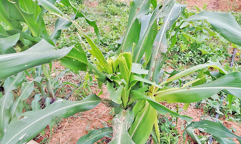 text_fieldsകീടത്തിെൻറ ആക്രമണത്തിൽ ചോളം ചെടിയുടെ ഇലകൾ നശിച്ച നിലയിൽ
