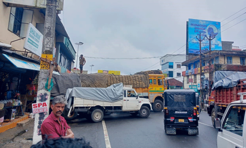 ലോറി ആക്സില് പൊട്ടി മണിക്കൂറുകളോളം റോഡില്; കുരുക്കിൽ വലഞ്ഞ് നഗരം