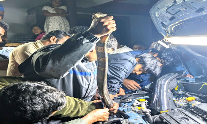 കാറിന്റെ ബോണറ്റിനുള്ളിൽ രാജവെമ്പാല !