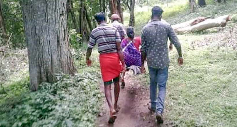 text_fieldsകോട്ടവയലിലെ വനപാതയിലൂടെ രോഗിയെ ആശുപത്രിയിലേക്ക് കൊണ്ടുപോകുന്നു