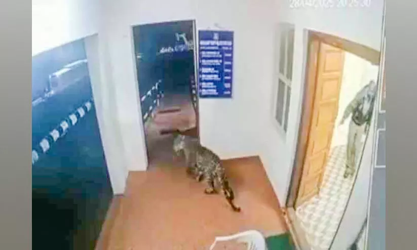പൊലീസ് സ്റ്റേഷനിൽ മിന്നൽ ‘പരിശോധന’ക്കെത്തി പുള്ളിപ്പുലി