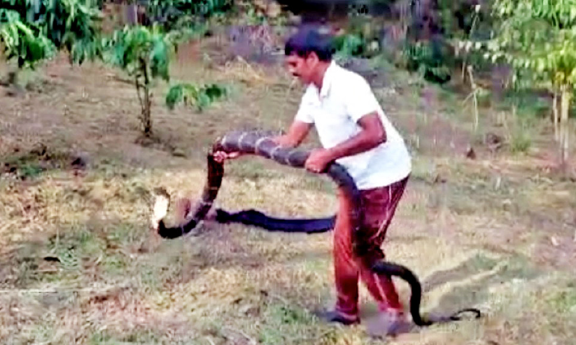 തോൽപ്പെട്ടിയിൽ നിന്നും രാജവെമ്പാലയെ പിടികൂടുന്നു