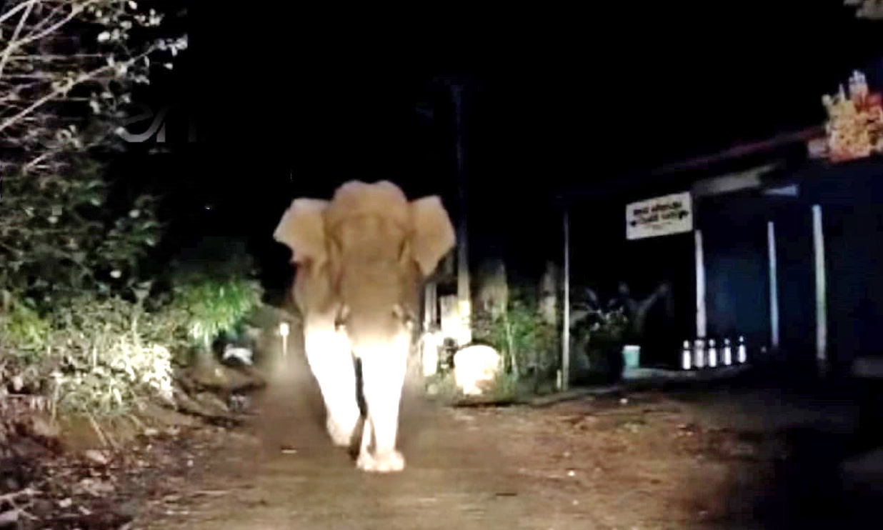 കഴിഞ്ഞദിവസം രാത്രി പത്തരയോടെ നാഗമനയിൽനിന്ന് ആക്കൊല്ലിയിലേക്കുള്ള യാത്രക്കിടെ ജനവാസ മേഖലയിൽവെച്ചാണ് കാറിന് നേരെ കൊമ്പൻ കുതിച്ചെത്തിയത്. ഒറ്റയാൻ പലതവണ ആക്രമിക്കാൻ ശ്രമിച്ചെങ്കിലും ഡ്രൈവറായ നിധീഷ് സംയമനത്തോടെ വാഹനം ചലിപ്പിക്കാതെയിരുന്നു. തൊട്ടടുത്തുള്ള തോട്ടത്തിലേക്ക് ആന കയറിയ ഉടൻ സുധീഷ് കാർ മുന്നോട്ട് എടുക്കുകയും രക്ഷപ്പെടുകയുമായിരുന്നു.