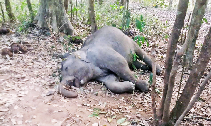 പിലാക്കാവ് വനത്തിൽ പനംകുറ്റി ഭാഗത്ത് ചെരിഞ്ഞ കാട്ടാന
