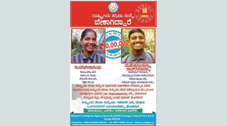 text_fieldsഒളിവില് കഴിയുന്ന ഗീത, ജയന് എന്നിവരെ കണ്ടെത്താൻ എൻ.െഎ.എ പത്തുലക്ഷം രൂപ പാരിതോഷികം പ്രഖ്യാപിച്ച അറിയിപ്പ്