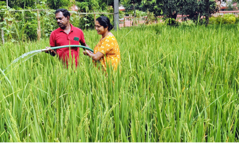 text_fieldsപുൽപള്ളി തുറപ്പുറത്ത് യോഹന്നാനും ഭാര്യ ലില്ലിയും വീട്ടുമുറ്റത്തെ നെൽകൃഷി നനക്കുന്നു