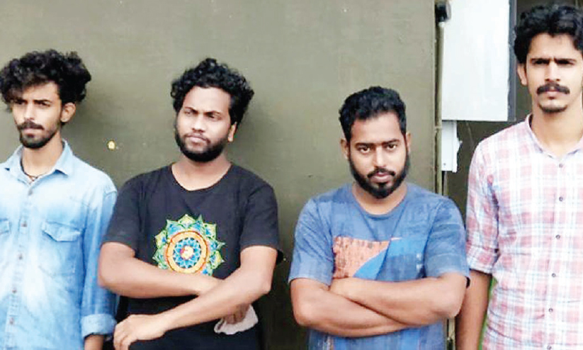 കോഴിക്കോട് സ്വദേശികളായ പേരാമ്പ്ര പരപ്പില് വീട് പ്രസൂണ് (29), പേരാമ്പ്ര ചങ്ങരോത്ത് കുന്നോത്ത് വീട്ടില് അരുണ് (28), കുറ്റ്യാടി പാലേരി തെക്കേ ചാലില് വീട്ടില് സംഗീത് (28), പേരാമ്പ്ര ഒതയോത്ത് മീത്തല് വീട്ടില് ആർ. അഖില് (24) എന്നിവരാണ് അറസ്റ്റിലായത്.