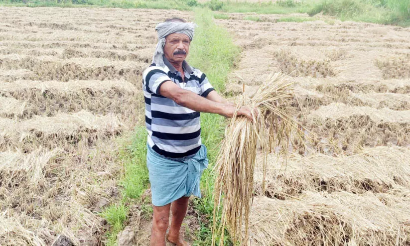 text_fieldsമഴയിൽ നശിച്ച നെൽക്കറ്റയുമായി കർഷകൻ