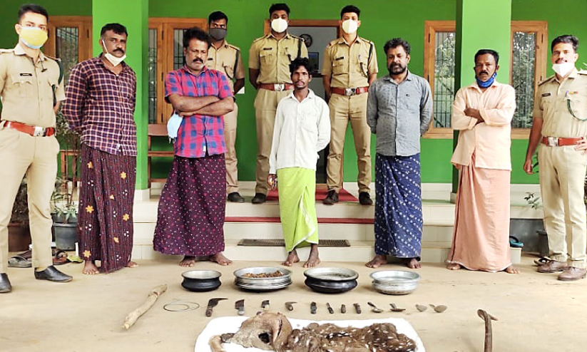 പുള്ളിമാനെ വേട്ടയാടിക്കൊന്ന അഞ്ചംഗ സംഘം പിടിയിൽ