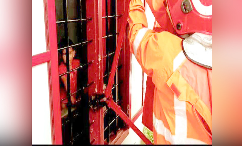 വീട്ടിനുള്ളിൽ കുടുങ്ങിയ കുഞ്ഞിനെ അഗ്നിരക്ഷസേന രക്ഷപ്പെടുത്തി