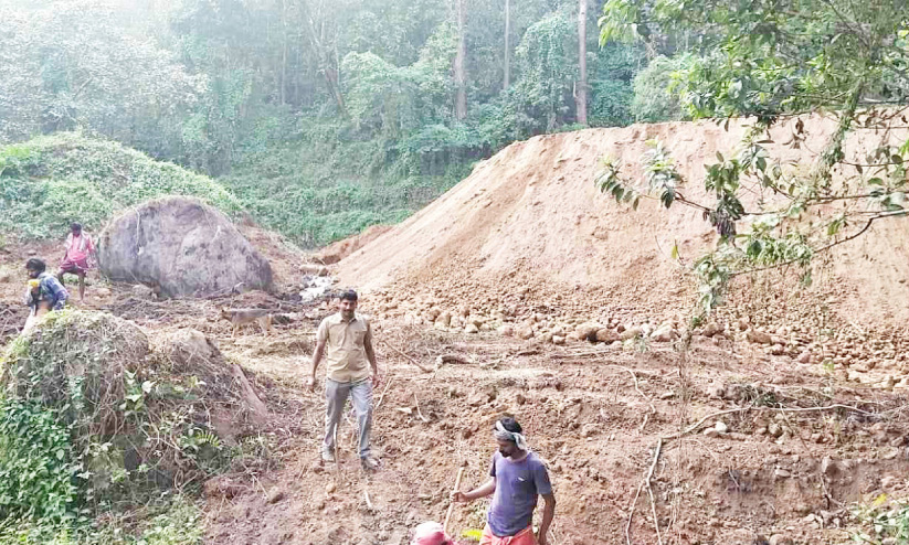 text_fieldsപെരുങ്കുളം മലയിലെ നീർച്ചാൽ നികത്തിയ നിലയിൽ