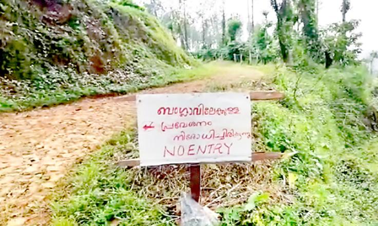 text_fieldsബംഗ്ലാവിലേക്കുള്ള വഴിയിൽ നാട്ടുകാർ സ്ഥാപിച്ച ബോർഡ്