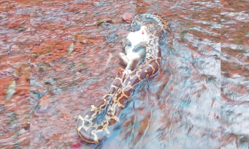 കുരങ്ങനെ പിടികൂടി പെരുമ്പാമ്പ്