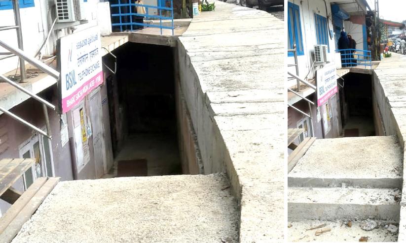 ഇതോടെയാണ് വലിയ കുഴിയായി മാറിയത്. കൈവരികളോ മുന്നറിയിപ്പ് ബോർഡുകളോ ഇല്ല. ഇവിടെയാണ് ബാങ്കിെൻറ എ.ടി.എം കൗണ്ടറുള്ളത്. ഇതും ഭീഷണിയാണ്. നൂറുകണക്കിന് ഉപഭോക്താക്കൾ ബാങ്കിലേക്കും മറ്റും ഇതിലേ കടന്നുപോകുന്നുണ്ട്. കഴിഞ്ഞ ദിവസം താഴേക്കു വീഴാൻ പോയ സ്ത്രീയെ ബി.എസ്.എൻ.എൽ ജീവനക്കാരനാണ് രക്ഷപ്പെടുത്തിയത്.