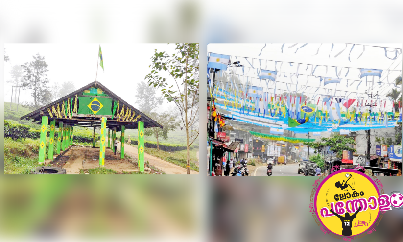 text_fieldsതാഴെ അരപ്പറ്റയിൽ തേയിലത്തോട്ടത്തിന് സമീപമുള്ള ഷെഡ്ഡിന് ആരാധകർ ബ്രസീലിന്റെ കൊടിയുടെ മാതൃകയിൽ നിറം നൽകിയപ്പോൾ, താഴെ അരപ്പറ്റയിൽ റോഡിന് മുകളിലായി ഇഷ്ട ടീമുകളുടെ കൊടിതോരണങ്ങൾ ഉയർന്നപ്പോൾ