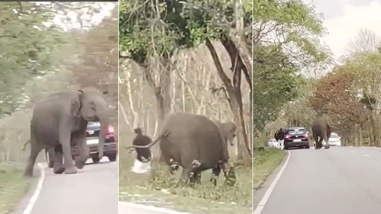 ചിത്രമെടുക്കാൻ കാറിൽ നിന്നിറങ്ങി; യുവാവിനെ ഓടിച്ച് കാട്ടാന, രക്ഷപ്പെട്ടത് തലനാരിഴക്ക് - വിഡിയോ